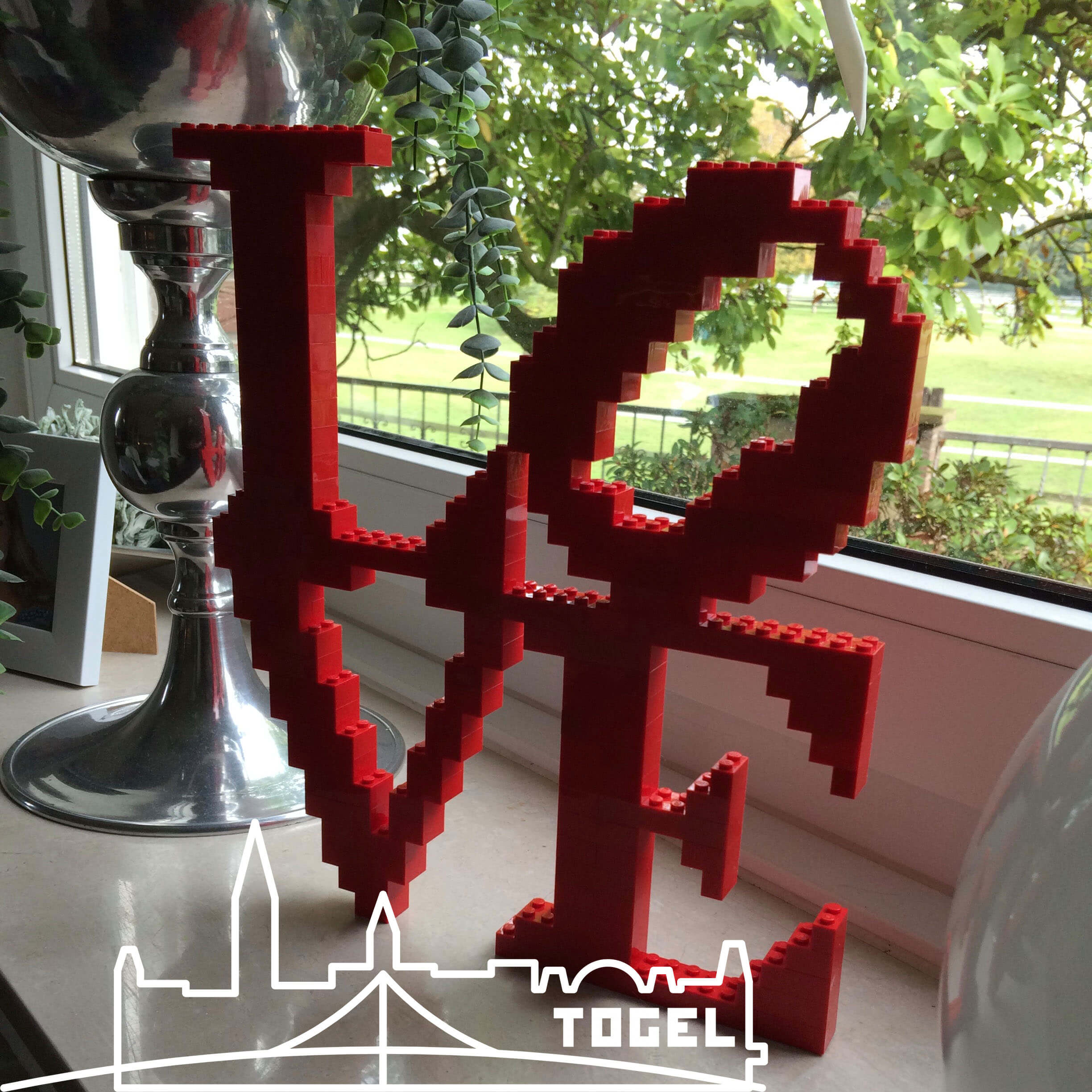 Der Lego Love Schriftzug ist angelehnt an die LOVE Skulptur von Robert Indiana. Sie ist eins der berühmtesten Werke des Künstlers und steht auf dem John F. Kennedy Plaza in Philadelphia. Ursprünglich hatte Robert Indiana das Design auf einem Gemälde veröffentlicht bevor die Skulptur entstand.