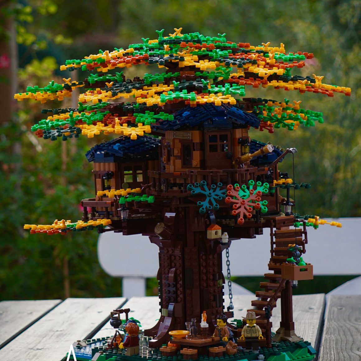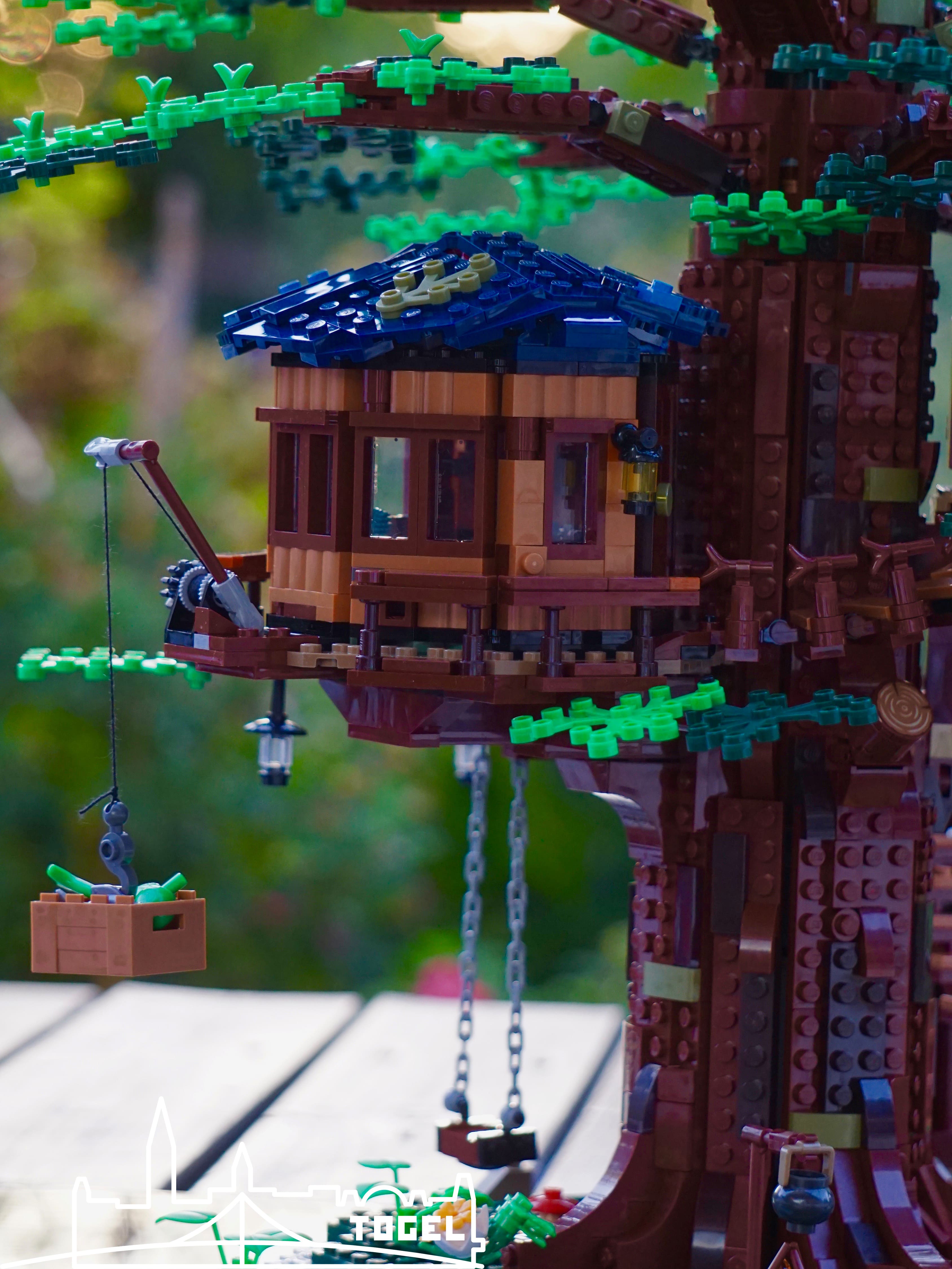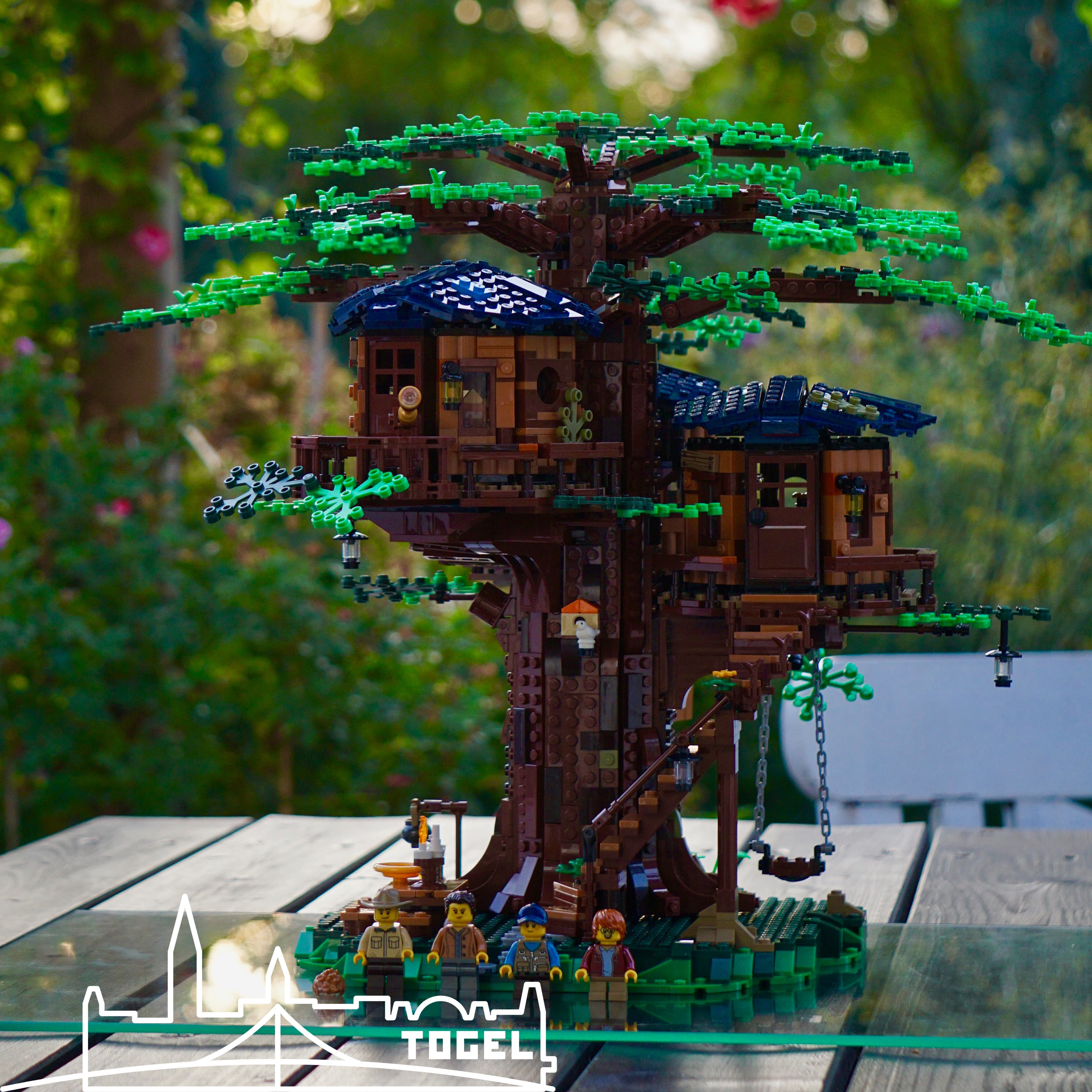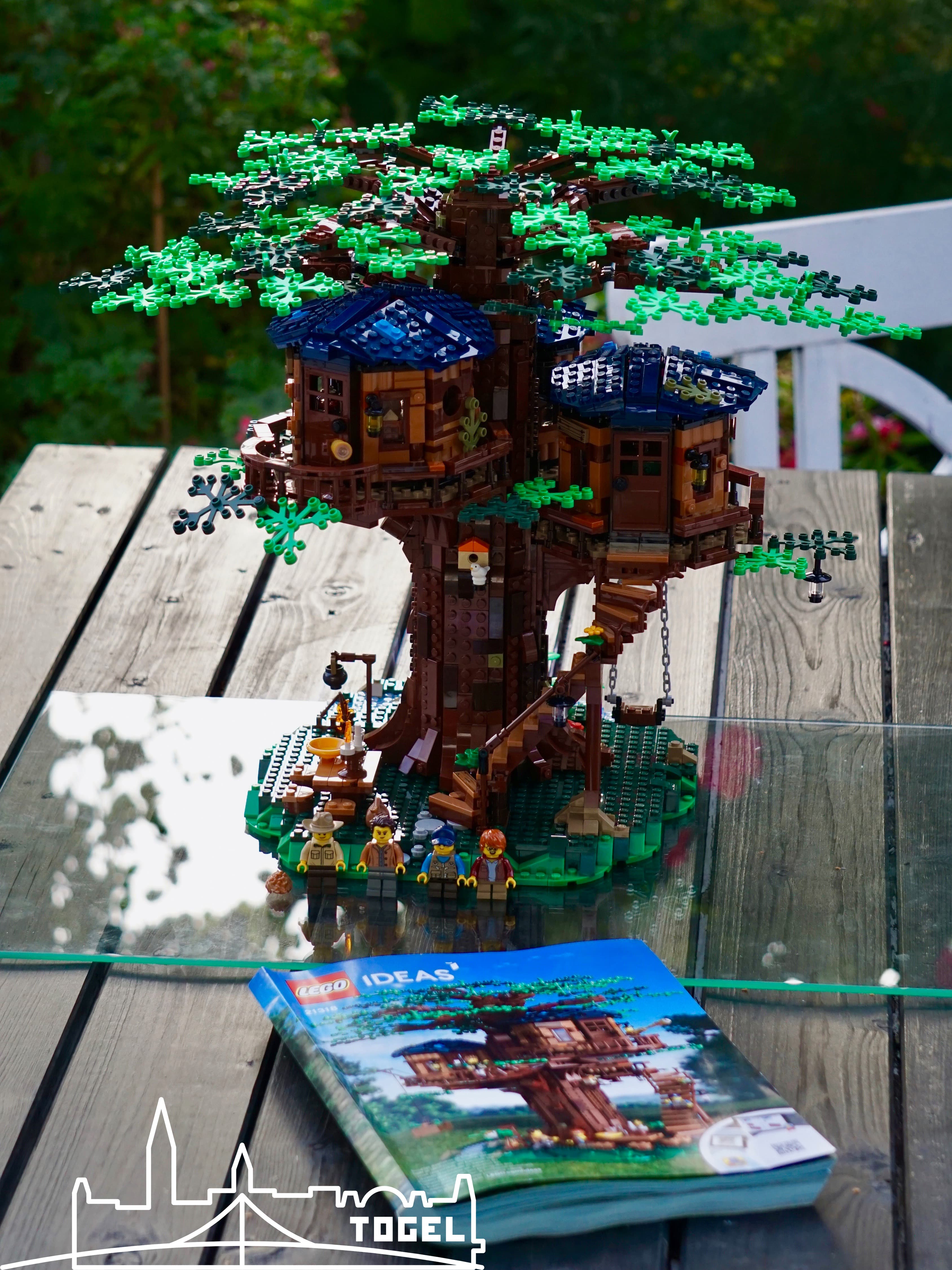 Das Lego Ideas Baumhaus (21318)* gefällt mir ausgesprochen gut, vor allem wenn man eine dichte Baumkrone mit allen beiliegenden Blättern erstellt. Die Farbwahl finde ich von der Basis über den Baumstamm, bis zu den Hütten und den Blättern passend und harmonisch. Der Preis ist stolz, aber auf dem zweiten Blick für die Anzahl der Teile und den Bauspaß sehr fair, verglichen mit anderen Lego Sets. Denn wie das äußere Erscheinungsbild erahnen lässt, ist der Zusammenbau ziemlich abwechslungsreich und spannend. Es wird sicher einen schönen Platz in der Lego Stadt Togel erhalten.
