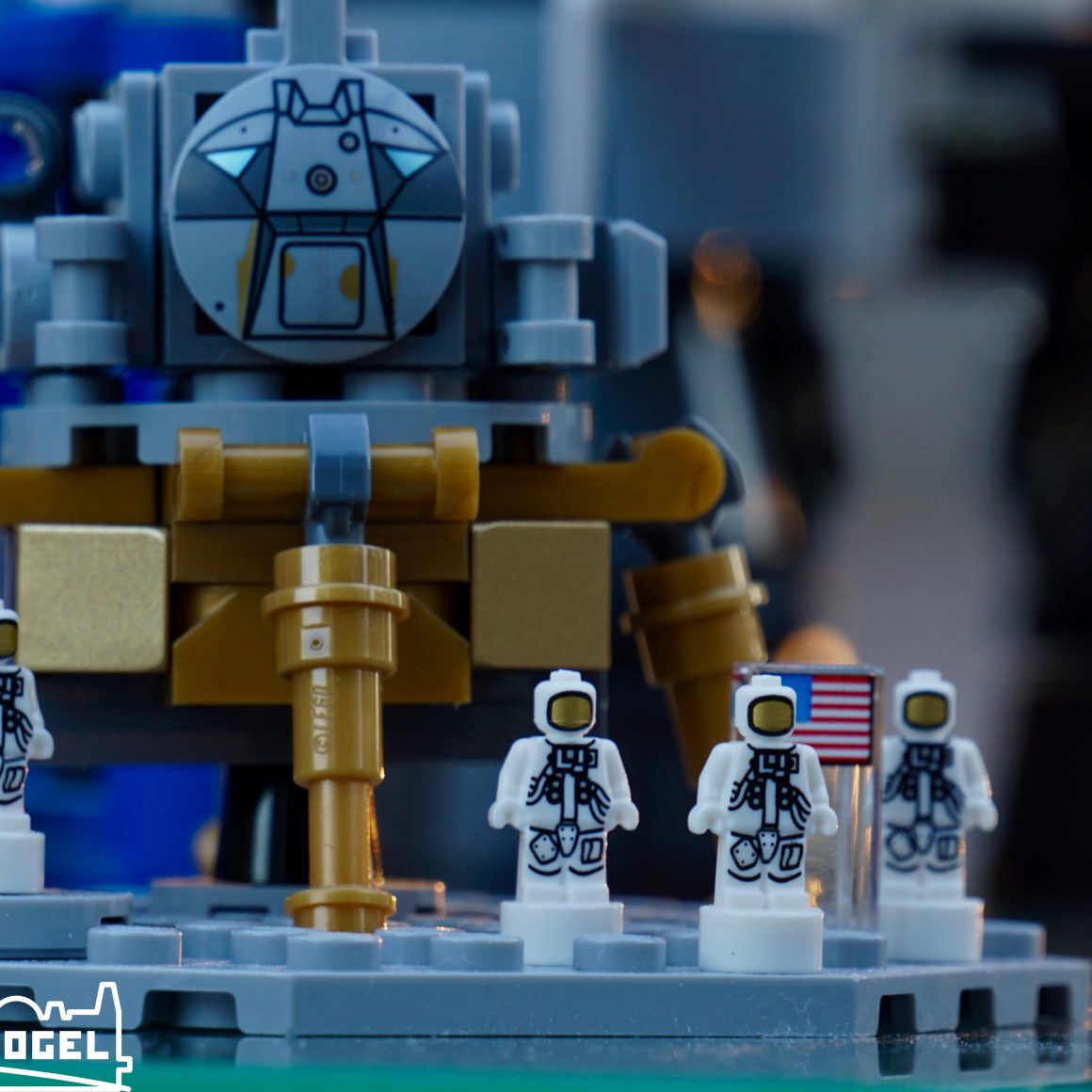 Die NASA Apollo Saturn V* wurde ungefähr im Maßstab 1:110 nachgebaut und enthält passende Mikrofiguren mit einer Astronautenbedruckung. Generell enthält das Lego Set keine Aufkleber und alle Steine sind bedruckt. Das gefällt mir persönlich besonders gut und wertet das Set deutlich auf. Ein nettes Detail ist hier auch die transparente Fliese, welche mit der Amerikanischen Flagge bedruckt ist.  Neben den Astronauten Mikrofiguren sind auch die Mondlandefähre und der Lunar Orbiter enthalten. Diese können sogar im obersten Drittel der NASA Apollo Saturn V verstaut werden.