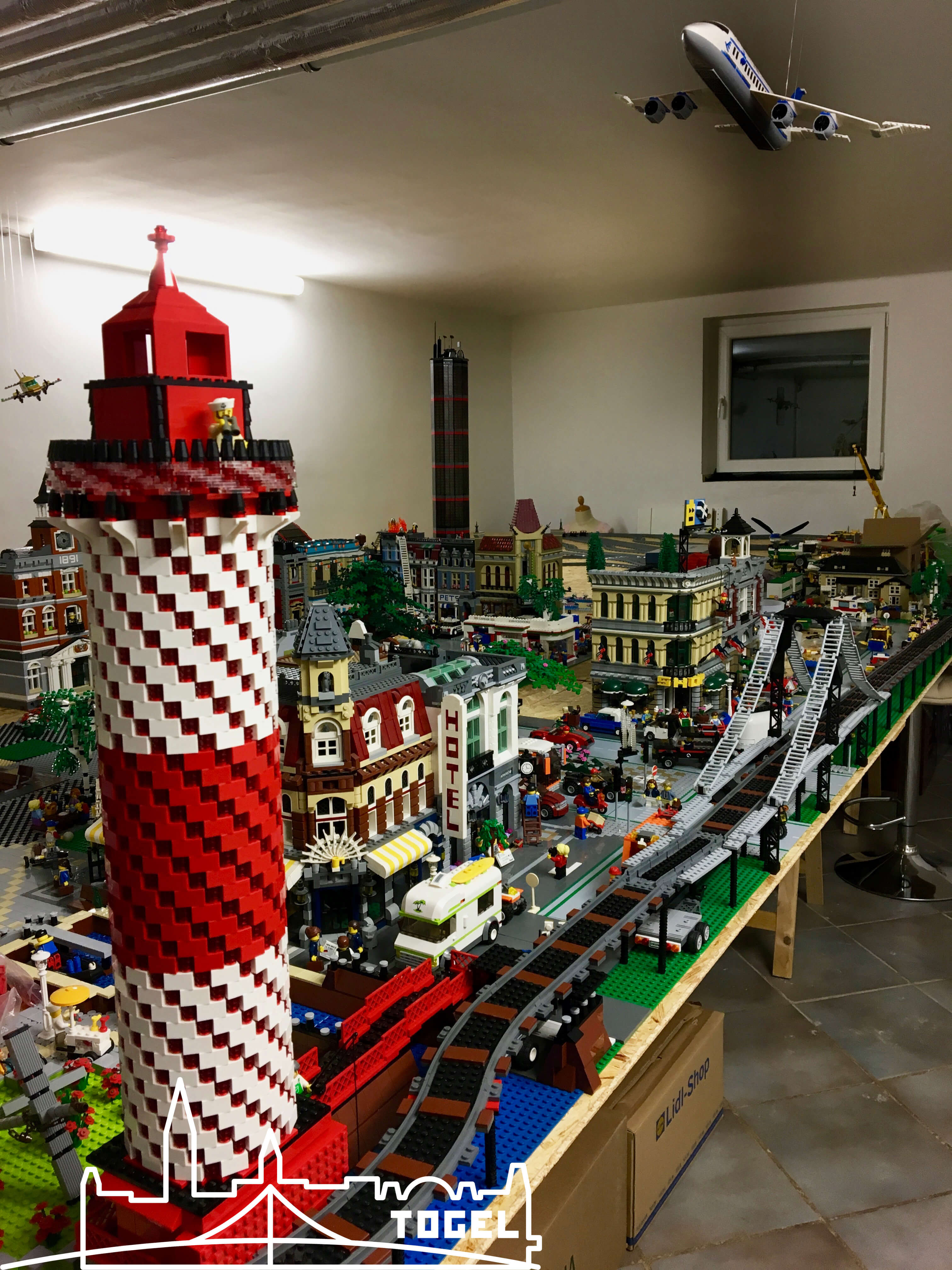 Um den Schiffsverkehr in der Lego Stadt Togel zu etablieren, hat der Bürgermeister den Bau eines Leuchtturms angeordnet. Nachdem einige Designvorschläge dem Rat vorlagen, wurde eine klassische und doch moderne Version in Auftrag gegeben. Der Lego Leuchtturm ist klassisch in weißen und roten Abschnitten eingeteilt. Zudem enthält er durchgehend spiralförmig angeordnete, kleine, transparente Fenster in rot. Auf der Ebene des Leuchtsignals befindet sich eine schmale rundum angelegte Aussichtsplattform. Hier hat man eine fantastische Sicht über die Stadt Togel und das weite, blaue Meer. Er ist bereits jetzt zu einem echten Merkmal der Lego Stadt geworden.