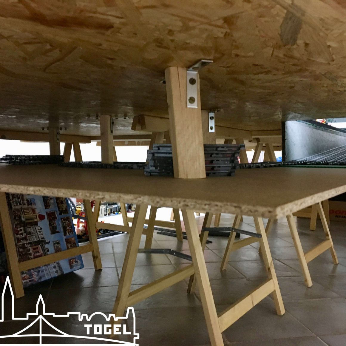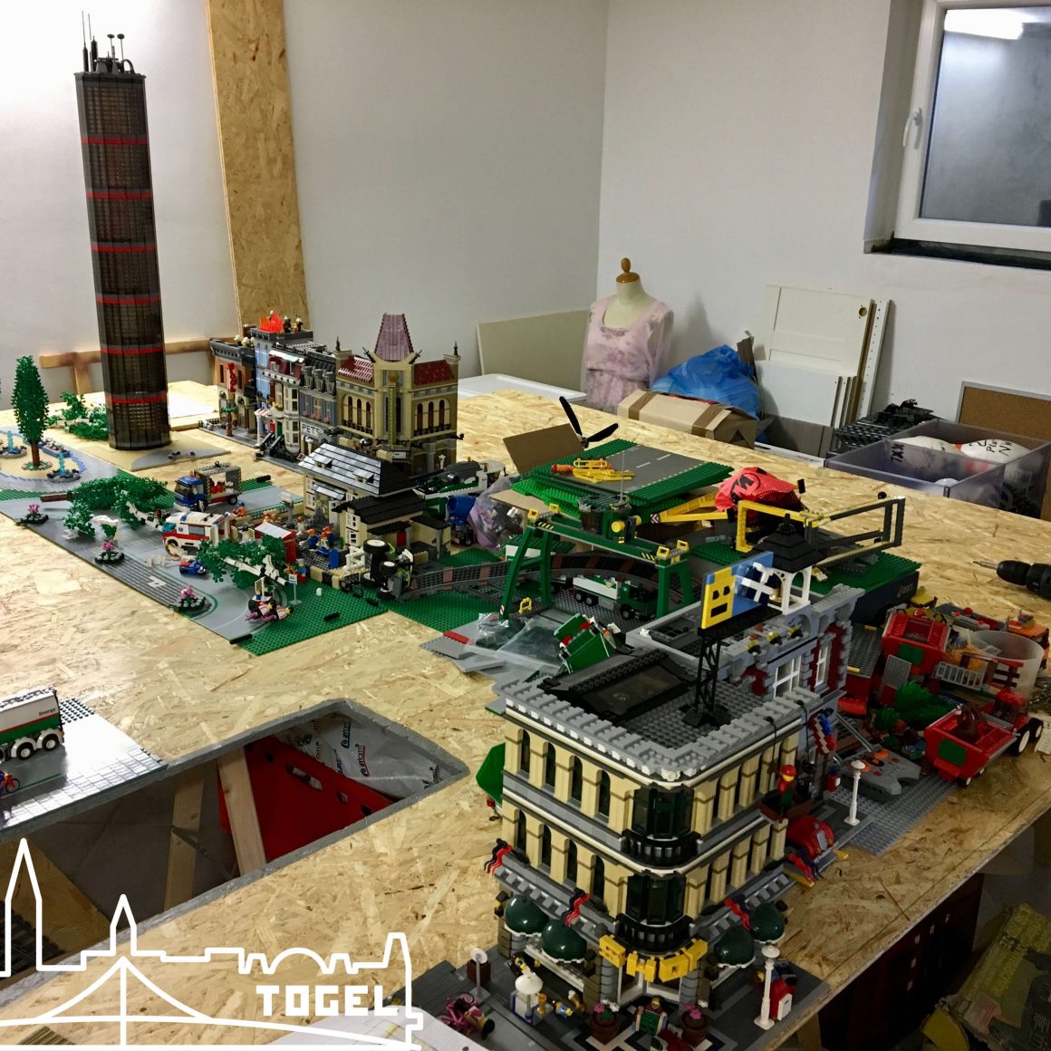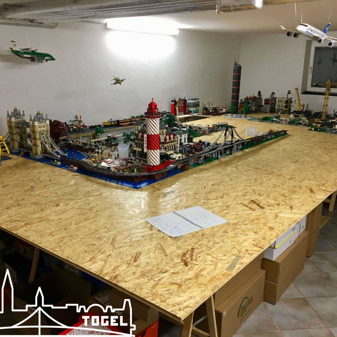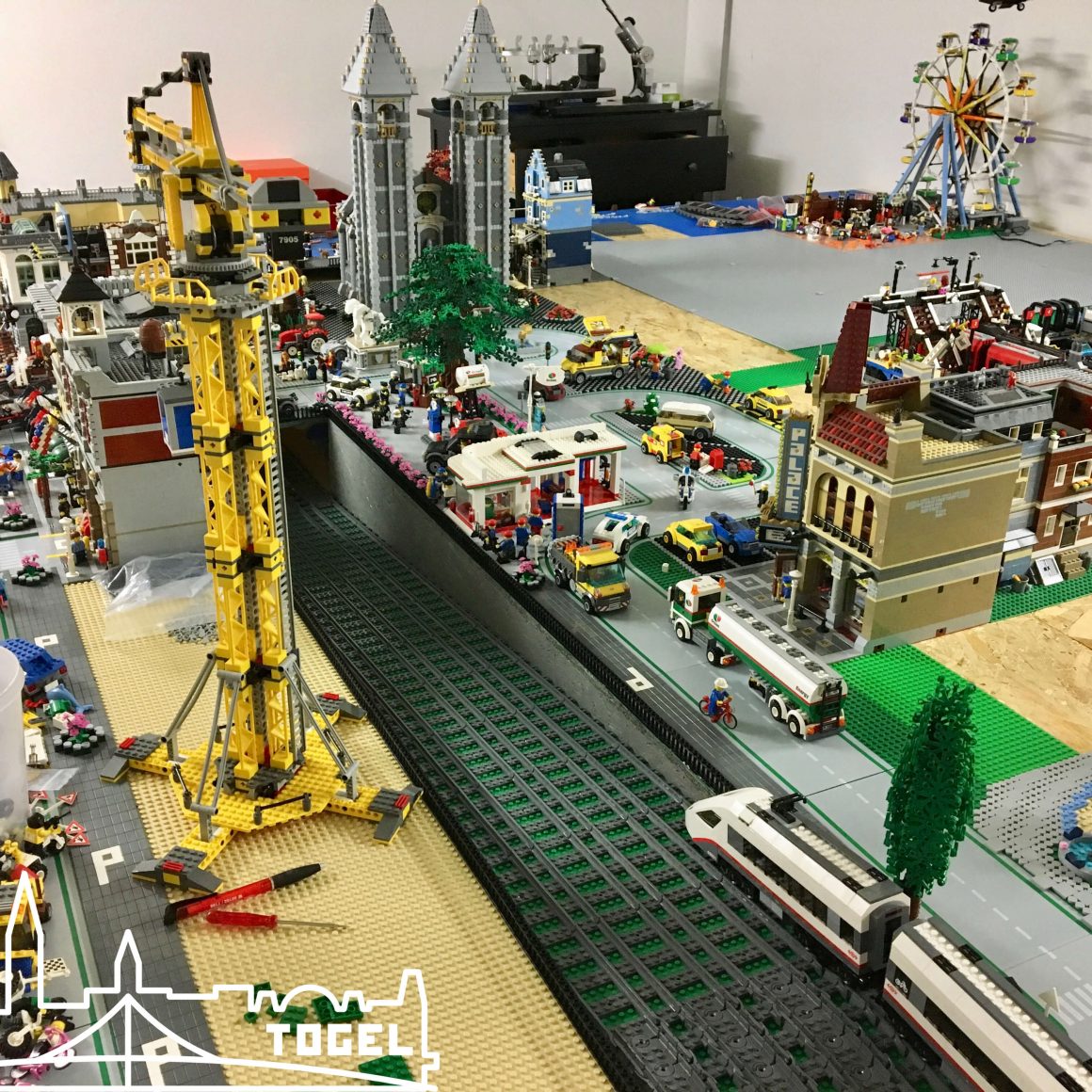 Schienen* nehmen innerhalb eines Lego Layouts wahnsinnig viel Platz ein. Vor allem, wenn man sich ein solides Schienennetz wünscht, wo einige Züge parallel ihre Kreise ziehen können. Um nun mehr Platz für teures Bauland innerhalb der Stadt zu gewinnen, ordnete der Bürgermeister ein teures Projekt an: Die Verlagerung eines Teils des Schienennetzes in den Untergrund der Lego Stadt. Wenn man es nicht physikalisch besser wüsste, könnte man meinen für die Bauarbeiten wurde die ganze Stadt verschoben und teilweise abgebaut. Das Resultat ist zunächst ein riesen Loch im Herzen der Lego Stadt Togel.